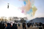 정안뉴스 황도연 기자 | 홍성군은 2026년 병오년 새해를 맞아 지난 1일 백월산 정상에서 영신 고천대제와 해맞이 행사가 성황리에 개최했다고 밝혔다. 이번 행사는 월산2리 마을청년회가 주관하여 군민의 안녕과 홍성군의 번영을 기원하는 백월산 영신고천대제 봉행을 시작으로 대형스크린을 통한 군민들의 새해 소망 영상 상영, 일출 감상순으로 진행됐고, 해맞이 행사가 끝난 후 떡국 나눔 행사로 일정이 마무리됐다. 이날 영신고천대제는 이용록 홍성군수가 초헌관으로, 김덕배 홍성군의회의장이 아헌관, 임광섭 홍성교육지원청 교육장이 종헌관으로 참여했으며, 해맞이 행사에는 떠오르는 해를 바라보며 각자의 소망을 기원하고 서로 덕담을 나누는 뜻깊은 시간을 가졌다. 이용록 홍성군수는 “추운 날씨에도 불구하고 많은 군민들께서 함께해 주셔서 더욱 뜻깊은 행사가 됐으며, 2026년 병오년 한해에도 군민들이 더욱 행복한 홍성군을 만들기 위해 최선을 다하겠다”고 밝혔다. 한편 이날 백월산 영신 고천대제 및 해맞이 행사가 끝난 후 홍주의사총과 충령사에서 2026년 신년맞이 홍주의사총 참배 및 충령사 참배를 거행했다.