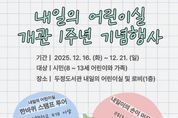 정안뉴스 황도연 기자 | 천안시 두정도서관은 오는 16~ 21일 ‘내일의 어린이실’ 개관 1주년 맞아 다채로운 기념행사를 운영한다고 15일 밝혔다. 도서관은 8~ 13세 어린이와 가족들을 대상으로 ▲내일의 어린이실 한바퀴 스탬프 투어 ▲1주년 축하 포토존 ▲내일이의 손이 머무른 책 전시 등을 선보인다. 개관일인 20일에는 어린이실에 방문하는 어린이들과 함께 축하 떡을 나누며 1주년의 의미를 함께 나눌 예정이다. 이와 함께 도서관 16주년과 크리스마스를 기념해 ‘반짝이는 리듬 케이크’ 타악기 콘서트와 특별 주문 케이크 만들기 등 다채로운 프로그램을 통해 1주년을 축하할 예정이다. 두정도서관 관계자는 “1주년 기념행사를 통해 어린이와 가족 모두가 행복한 시간을 보내기를 바란다”며 “내년에도 내일의 어린이실을 내실있게 운영할 수 있도록 노력할 것”이라고 말했다. 한편, 지난 11월까지 8만 3,000여 명의 어린이들이 내일의 어린이실을 이용했으며, 81개교 1,559명의 어린이가 회원으로 가입했다.