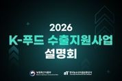 정안뉴스 안정주 기자 | 농림축산식품부는 K-푸드의 글로벌 진출 확대를 위해 전년보다 900억원 증가한 7,070억원 규모의 2026년 K-푸드 수출지원사업 설명회를 1월 23일 서울 과학기술컨벤션센터에서 개최한다고 밝혔다. 이번 설명회에서 정경석 식품산업정책관은 지난해 12월 관계부처 합동으로 발표한 '글로벌 K-푸드 수출 확대 전략'의 A-B-C-D-E 5대 세부 추진전략주요 내용을 설명할 예정이다. 전략 발표에 이어 한국농수산식품유통공사(aT)는 수출정보 제공 및 원스톱 수출지원 허브, 신선농산물 통합조직 육성, 글로벌 성장패키지(농식품 수출바우처), 해외공동물류·콜드체인, 바이어 초청상담, 원료구매·시설현대화 등 정책자금(융자), 외식기업 해외시장 진출 지원 등 K-푸드 수출 과정 전반에 걸쳐 구체적인 사업 내용을 소개한다. 또한, 지식재산처, 대한무역투자진흥공사, 중소벤처기업진흥공단, 식품안전정보원, 한국무역보험공사, 한국지식재산보호원, 한국식품연구원, 한국식품산업클러스터진흥원 등 관계 부처와 유관 기관은 K-푸드 수출 확대를 위한 무역보험, K-브랜드 보호, 해외 인증, 수출 상품화 등 수출 관련 필