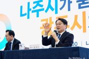 정안뉴스 안정주 기자 | 광주광역시는 11일 오후 나주시청 대회의실에서 ‘광주전남 통합 나주시 상생토크’를 개최하고, 통합의 필요성과 나주시 발전 방안에 대해 나주시민과 소통했다. 이날 상생토크에는 강기정 광주시장과 윤병태 나주시장 등 200여명이 참석해 통합 이후 나주시의 역할과 변화 등에 대해 의논했다. 강 시장은 먼저 ▲광주‧전남 통합 의지 ▲정부의 획기적인 특전(인센티브) ▲특별법안 특례 등을 설명하고, 통합의 긍정적 방향과 기대효과를 발표했다. 강 시장은 이어 시민과의 지속적인 소통 의지를 밝혀 현장 공감대를 형성했다. 통합 이후 광주와 나주 간 협력전략으로 ▲나주 혁신도시-원도심-광주를 잇는 광역교통망 강화 ▲에너지 신산업과 연계한 혁신도시 기능 고도화로 지역 성장 견인 ▲청년과 연구 인력이 정착할 수 있는 주거·문화·생활 여건 개선 등을 제시했다. 이어진 질의응답에서는 ▲첨단산업 육성을 위한 핵심 특례 특별법 반영 ▲의료인프라 질적 향상 ▲광주-나주 광역철도 신속 추진 등 광역 철도·도로 등 교통 기반시설(인프라) 구축 등 통합 이후 지역 주요 현안에 대한 다양한 질문이 오갔다. &nb