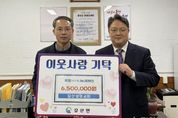 정안뉴스 황도연 기자 | 충남 홍성군 은하면 화봉리 소재 ㈜홍주유과 정창훈 대표는 설 명절을 앞두고 관내 저소득·취약계층 노인들을 위해 은하면에 350만원 상당의 한과 100박스를 기부했다. 지난 15일 은하면은 희망2026 나눔캠페인 현물기탁식 행사를 추진하여 ㈜홍주유과에 감사의 마음을 전달했고, 기부받은 한과 100박스는 은하면의 저소득층·취약계층 가구 등에 전달될 예정이다. 정창훈 대표는 “경기 침체로 몸과 마음이 지치고 힘든 요즘, 쓸쓸하게 명절을 보내는 마을 어르신들께 조금이나마 따듯한 온기를 전하고자 한과를 기부하게 됐다”라며 어르신들의 건강한 한 해를 기원했다. 심선자 은하면장은 “홍주유과의 소중한 나눔에 깊은 감사를 드리며, 이번 기부를 통해 우리 지역의 서로 돌보는 마음이 깊어지기를 바란다”며, “앞으로도 우리가 함께 힘을 모아 어려운 이웃들에게 작은 위로가 될 수 있도록 최선을 다하겠다”고 밝혔다. 은하면은 앞으로도 관내 저소득층·복지사각지대 가구 등에 힘이 될 수 있는 복지행정 구현에 앞장설 계획이다. 한편 ㈜홍주유과는 매년 설 명절마다 지역사회의 소외된 노인들을 위