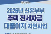 정안뉴스 황도연 기자 | 당진시는 1월 19일부터 2월 13일까지‘2026년 신혼부부 주택 전세자금 대출이자 지원사업’ 신청자를 모집한다고 16일 밝혔다. 2019년부터 매년 실시하고 있는‘신혼부부 주택 전세자금 대출이자 지원사업’은 신혼부부의 주거비 부담 완화 및 안정된 정주 여건 조성으로 혼인과 저출산 문제를 해결하고, 주거복지 향상을 도모하기 위한 사업이다. 올해는 80가구 지원을 목표로, 전세자금 대출 잔액의 2% 내에서 연 1회 최대 150만 원까지 지원한다. 신청 자격은 공고일(2026.1.12.) 기준 중위소득 180% 이하(2인 기준 7,559,000원)를 충족하여야 하며, 관내 3개월 이상 거주 중인 5년 이내(다자녀인 경우 7년 이내) 혼인신고 한 신혼부부이다. 주택기준은 당진시 관내 주거용 주택이고 금융권 전세자금 대출 용도에‘주택’,‘임차’,‘전세’ 등으로 명기된 경우이며, 일반·신용대출은 제외된다. 신청은 주소지 관할 읍면동 행정복지센터에 방문하면 된다. 제출 서류 등 자세한 사항은 당진시 누리집 고시공고 게시판에서 확인할 수 있다.