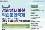 정안뉴스 황정혜 기자 | 기장군는 오는 17일부터 19일까지 정관읍 좌광천 지방정원 일원에서‘제11회 정관 생태하천 학습문화축제’를 개최한다고 14일 밝혔다. ‘정관 생태하천 학습문화축제’는 부산시 구·군 축제 평가에서 ‘2024년 부산시 지정 최우수 축제’ 및 ‘2025년 유망축제’로 연이어 선정되면서, 우수한 축제 콘텐츠를 대외적으로 인정받고 있다. 올해는 11회째를 맞아 더욱 풍성하고 다채로운 프로그램으로 진행될 예정이다. 축제기간 ▲길놀이 퍼레이드 ▲걷기대회 ▲과학·영어 체험행사 ▲문예행사 ▲청소년 어울마당 ▲정관 나눔 프리마켓 ▲좌광천 생태체험 프로그램 ▲북 콘서트 등 다양한 체험과 행사가 진행된다. 특히 올해에는 좌광천 지방정원 어린이 동요제, 로봇 경연대회 등 새로운 프로그램이 마련돼 더욱 기대를 모으고 있다. 첫날인 17일에는 기장군 평생학습 프로그램 참가자 공연과 정관읍 승격 10주년 가요쇼, 지역가수 및 초대가수의 축하공연이 진행된다. 18일에는 어린이와 청소년이 참여하는 사생대회와 백일장대회가 열리고, 개막식이 개최된다. 또한 ‘달밤달초(청