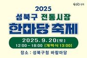 정안뉴스 안정주 기자 | 서울 성북구가 오는 9월 20일 성북구청 바람마당에서 ‘2025 성북구 전통시장 한마당 축제’를 개최한다. 이번 축제는 오후 12시부터 6시까지 진행되며, 오후 1시 개막식을 시작으로 다양한 프로그램이 마련된다. 성북구는 이번 축제를 통해 관내 전통시장의 우수성과 시장별 특색을 널리 알리고, 주민과 상인이 함께 어울릴 수 있는 소통의 장을 제공한다는 계획이다. 축제에는 길음시장, 돈암시장, 돌곶이시장, 장위전통시장, 정릉시장, 정릉아리랑시장 등 6개 시장이 참여해 각 시장의 대표 상품과 먹거리를 선보인다. 방문객들은 각종 상품을 직접 체험하고 구매할 수 있으며, 이를 통해 지역 경제 활성화에도 기여할 것으로 보인다. 문화예술 공연 역시 축제의 흥을 더할 예정이다. 국악신동 서건후, 전자바이올리니스트 제니유, 가수 정호·경수빈·김건표, 판토마임 퍼포먼스 그룹 동동악극단이 다채로운 무대를 선사한다. 또한 국민대 풍물패, 성신여대 댄스팀이 전통과 현대가 어우러진 특별 공연을 펼친다. 현장에서는 전통시장 O·X 퀴즈 등 주민 참여 이벤트도 열려 전통시장의 정겨운 분위기와 활기를 만끽할 수 있다