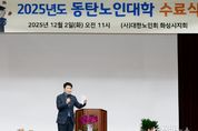 정안뉴스 안정주 기자 | 화성특례시의회는 2일, 동탄노인회관에서 열린 ‘동탄노인대학 수료식’에 참석하여 교육과정을 성실히 이수한 어르신들의 뜻깊은 결실을 축하했다. 이날 수료식에는 배정수 의장을 비롯해 이은진·이해남 의원이 참석했고, 노인대학 관계자와 수료 노인 대학생 등 150여 명이 참석해, 한 해 동안 이어진 배움과 소통의 여정을 함께 돌아봤다. 배정수 의장은 “오늘 수료식은 단순한 마침을 넘어서 더 건강하고 존엄한 노년의 삶을 향한 또 하나의 출발점”이라며 “우리 시의원들이 오늘 졸업하는 어머님, 아버님의 든든한 아들이자 딸이 되어 아름다운 동행에 언제나 함께하겠다”고 감사와 축하의 마음을 전했다. 한편, 동탄노인대학은 노년층 건강 증진과 평생학습 기회 확대를 위해 운영되고 있으며, 교양 교육·건강 프로그램·여가 활동 등 다양한 과정이 마련되어 있다. 특히 정서적 교류와 사회적 연결망 형성을 돕는 데 큰 역할을 해 지역사회 노인 복지 증진에 기여했다. 단체 관계자는 “기관 운영 과정에 대한 모니터링 결과 어르신들의 참여율이 높았을 뿐만 아니라 프로그램 만족도 역시 매우 높게 나타났으며, 배움