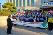 정안뉴스 황은경 기자 | 민족통일 옥천군협의회(회장 이규억)가 4일 옥천읍 행정복지센터에서 회원 45여 명이 참석한 가운데 ‘농어촌 기본소득 시범사업지 옥천군 추가 지정 촉구 결의대회’를 개최했다. ‘농어촌 기본소득 시범사업’은 농촌 지역의 생활 안정과 지역경제 활성화를 목표로 한 정부 핵심 사업으로, 선정된 마을 주민들에게 2026년부터 2027년까지 2년간 매월 15만 원의 기본소득을 지급하는 제도다. 정부는 지난 10월 20일 경기 연천, 강원 정선, 충남 청양, 전북 순창, 전남 신안, 경북 영양, 경남 남해까지 총 7개 군을 최종 사업 대상지로 선정했다. 이날 결의는 최근 정부의 농어촌 기본소득 시범지역 선정 과정에서 옥천군이 제외된 데 따른 것으로, 참석자들은 “지역 형평성 및 지역균형발전을 고려하여 옥천군을 추가 지정해야 한다”는 데 뜻을 모았다. 이규억 회장은 “옥천과 같은 농촌 지역이 활력을 되찾고 세대 간 균형을 이루기 위해서는 충북을 배제해서는 안된다”며 “군민의 기대와 희망이 담긴 농어촌 기본소득 시범사업에서 옥천군이 제외된 것은 큰 아쉬움이다. 지금이라도 옥천군을