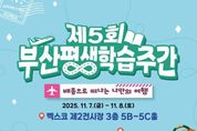 정안뉴스 황정혜 기자 | 부산시와 '재단법인 부산여성가족과 평생교육진흥원'은 오늘(7일)과 내일(8일) 이틀간 오전 10시부터 오후 5시까지 벡스코 제2전시장 3층에서 '제5회 부산평생학습주간'을 개최한다고 밝혔다. ‘부산평생학습주간’은 부산의 평생교육 관련 기관과 시민이 참여하여 그간의 평생학습 성과를 공유하고 문화를 확산하여 시민의 평생학습 관심을 높이는 축제의 장이다. 올해 행사에는 교육청, 16개 구․군, 평생교육 기관 등 70개 기관이 참여한다. 이번 행사는 '배움으로 떠나는 나만의 여행'이라는 주제로 시민들이 부산 평생교육을 한눈에 살펴보고, 평생교육기관 및 전문가 간 정보 공유를 통해 평생교육 우수사례를 확산하는 자리로 마련됐으며, ▲시민들이 평생교육을 접하고 체험하는 '평생교육 홍보·체험관 운영' ▲2025년 평생교육사업의 성과를 소개·공유하는 '성과공유회' ▲평소 갈고닦은 실력을 선보이는 '평생학습동아리 축제' ▲'문해교육 시화전 수상작품 전시' ▲다양한 부대행사 등으로 이틀간 진행된다. ‘행사 첫날’ 개막식에서는 평생학습 발전에 기여한 3개 우수기관에 부산평생학습대상을 시상한다.