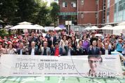 정안뉴스 안정주 기자 | 박강수 마포구청장은 9월 15일 오전 11시, 성산아파트 내 농구장에서 열린 정준호 배우와 함께하는 ‘행복짜장Day’ 행사에 참석했다. 마포복지재단 주관으로 열린 이번 행사는 배우 정준호 씨를 비롯해 (주)도원명가 도원반점, 신비한형제들, 포인트유, 보헤미안컴퍼니, (사)희망을 나누는 사람들 등 다양한 단체가 총 환가액 2천만 원 상당의 현물을 후원하며 마련됐다. 이번 행사에 배우 정준호 씨는 후원자로 참여하는 동시에 주민들에게 직접 짜장면을 나누며 나눔의 의미를 더했다. 후원자들의 정성으로 마련된 600인분의 짜장면과 기념품은 주민들에게 전달되었고, 행사장은 함께 어울려 웃고 이야기하는 따뜻한 분위기로 가득 찼다. 개그맨 이형식 씨는 사회를 맡아 특유의 유쾌한 입담으로 공연과 관객을 하나로 만들며 행사장은 환한 웃음과 뜨거운 박수로 가득했다. 박강수 마포구청장은 “짜장면은 가족, 친구들과 함께했던 추억의 맛이 더해진 음식인 만큼, 오늘의 행복짜장Day도 주민 여러분께 또 하나의 흐뭇한 기억이 되길 바란다”라며, “앞으로도 마포구는 이웃 간 행복을 나누는 실뿌리