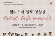 정안뉴스 안정주 기자 | 인천 동구문화체육센터는 오는 18일 오후 7시 30분 '첼리스타 첼로 앙상블' 공연을 선보인다고 밝혔다. 본 사업은 지역 공연장이 우수한 공연예술 콘텐츠를 유치·기획할 수 있도록 지원하여, 지역민의 공연 접근성과 문화 향유 기회를 높이기 위해 추진되고 있다. 공연은 (재)예술경영지원센터가 주최하고 문화체육관광부가 후원하는 ‘2025 공연예술 유통 지원사업’ 선정작으로, 12인의 첼리스트가 한 무대에 올라 깊고 풍성한 첼로의 하모니를 들려줄 예정이다. ‘첼리스타 첼로 앙상블’은 국내 정상급 첼리스트들이 모여 결성된 단체로, 클래식 명곡부터 영화음악·대중음악까지 폭넓은 레퍼토리를 첼로 특유의 깊은 울림으로 재해석하며 관객들의 사랑을 받아왔다. 이번 무대에서는 Popper, Ravel, Bartók, Chopin 등 세계적인 작곡가들의 작품과 작곡가 안성민의 창작곡을 연주하며, 첼로 본연의 음색을 극대화한 풍성한 사운드로 무대를 가득 채울 전망이다. 김찬진 동구청장은 “동구문화체육센터는 다양한 장르의 공연들을 통해 지역의 문화적 감수성을 높이고, 예술로 소통하는 주민