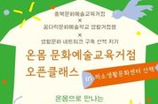 정안뉴스 황은경 기자 | 제천문화재단은 오는 11월 8일 하소생활문화센터 산책 2층 예술산책에서 '2025 생활문화 네트워크 구축 '산책 지기'' 사업의 일환으로 ‘생활문화 오픈클래스 2회차’를 개최한다고 밝혔다. 이번 오픈클래스는 문화예술교육 전문 사회적기업 온몸 주식회사와 협력해 진행되며, ‘온몸으로 배우고, 함께 나누는 문화예술교육의 첫걸음!’이라는 주제로 문화예술교육 현장의 실제 사례와 참여형 체험 프로그램을 함께 선보인다. 행사는 오전과 오후로 나뉘어 진행된다. 1부(10:00~12:00) 강연 ‘온몸으로 만나는 문화예술교육 첫 산책’에서는 온몸의 진혜경 강사가 문화예술교육 거점 운영 사례를 발표하고, ‘가끔은 문화예술교육자 – 참여자에서 교육자로 성장하기’라는 주제의 토크쇼를 통해 시민들과 소통한다. 2부(13:00~15:00) 체험 프로그램에서는 온몸의 대표 교육 브랜드 〈안녕, 몸〉을 함께 체험하고, ‘나만의 문화예술교육 브랜드 프로그램 만들기’ 실습을 통해 참여자 스스로 문화예술교육자로 성장할 수 있는 계기를 마련한다. 이번 오픈클래스는 문화예술교육자로 성장하고 싶은 제천시 예술인,