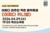 정안뉴스 안정주 기자 | 인천 미추홀구 학산 생활 문화센터 학산소극장에서 오는 4월 29일 저녁 7시 ‘2026년 학산 가족 음악회’의 첫 번째 공연을 개최한다. ‘학산 가족 음악회’는 공모를 통해 선정된 다양한 공연을 선보이며, 시민들이 일상에서 부담 없이 공연 문화를 즐길 수 있도록 마련된 프로그램이다. 특히 가까운 공간에서 편안하게 관람할 수 있어 가족 단위 관객을 비롯해 누구나 함께할 수 있는 것이 특징이다. 올해 첫 무대는 어쿠스틱 밴드 ‘신나는 섬’의 공연 ‘어쩌다 마주친 작은 음악 축제 '어쩌다 카니발'’로 꾸며진다. ‘신나는 섬’은 바이올린, 아코디언, 집시 기타, 우쿨렐레, 하모니카, 더블베이스, 퍼커션 등 다양한 어쿠스틱 악기를 기반으로 활동하며, 경쾌하면서도 따뜻한 사운드로 관객과 호흡해 온 팀이다. 특히 ‘망원동 로마니’, ‘아침부터 카니발이야’ 등 밴드 고유의 색깔이 담긴 곡들과 함께 ‘리멤버 미’, ‘에델바이스’ 등 대중에게 친숙한 곡들을 연주해, 마치 유럽의 어느 골목에서 우연히 마주친 거리 축제와 같은 이국적이고 동화적인 감동을 선사할 계획이다.