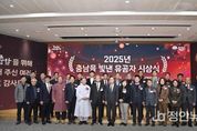 정안뉴스 황도연 기자 | 올 한 해 각계에서 지역 발전을 위해 헌신하며 충남을 더욱 빛나게 한 도민과 공무원들이 한 자리에 모였다. 도는 29일 도청 대회의실에서 김태흠 지사와 수상자 등 100여 명이 참석한 가운데 2025년 충남을 빛낸 유공자 시상식을 개최했다. 이날 시상식에서는 9개 분야 29명의 민간인과 도 16개 부서가 도지사 표창 수상의 영예를 안았다. 자랑스러운 충남인상은 신규 국가산업단지 후보지 최종 선정을 지원한 정재택 종축장이전개발 범천안시민추진위원회 위원장과 지역 복지 향상에 기여한 조명자 나눔플러스 천안지역본부 실장 등 6명이 받았다. 충청남도 문화상은 충남 문학 위상 제고에 기여한 김일형 시인 등 3명이, 충청남도 환경 보전 대상은 도의 탄소중립 기본계획 수립 및 공모 사업 선정에 기여한 이은석 건축공간연구원 연구위원 등 3명이 수상했다. 지역 건설산업 및 건설 문화 질서 확립에 기여한 건설인에게 수여하는 충청남도 건설인상은 하승완 우호 대표이사와 이찬호 대형종합개발 대표이사 등 6명이 수상의 영예를 안았다. 지방세 납부를 통해 지역 발전에 기여한