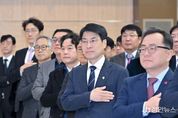 정안뉴스 안정주 기자 | 대구 달성군은 2일, 병오년 새해를 맞아 충혼탑에서 순국선열 추념식을 거행했다. 이날 행사는 새해 군정 다짐의 일환으로, 순국선열들의 숭고한 정신을 받들어 올바른 군정을 펼치겠다는 다짐을 전한 자리였다. 행사에는 추경호 국회의원, 최재훈 달성군수, 김은영 달성군의회 의장, 박수일 달성군 보훈단체연합회장 등 120여 명의 기관단체장과 보훈단체장이 참석했다. 행사는 국기에 대한 경례, 순국선열과 호국영령에 대한 묵념, 헌화 및 분향으로 진행됐으며, 참석자들은 국가와 민족을 위해 목숨을 바친 이들의 숭고한 넋을 기리고 새해 군정과 지역발전을 기원했다. 추경호 국회의원은 “새해에도 달성군민 모두의 가정에 건강과 행복만이 넘치길 기원한다”며 “지역발전을 위해 최선을 다해 소임을 다하겠다”고 밝혔다. 최재훈 달성군수는 “2026년은 붉은 말띠의 해로, 말이 가진 역동성에 뜨거운 열정의 붉은색이 더해진 해”라며 “활기찬 변화와 도전으로 한 단계 더 도약하는 달성군을 만들겠다”고 전했다. 한편, 달성군은 참배객과 보행 약자들의 불편 해소를 위해 충혼탑에 엘리베이터 설치 사업을 추진 중