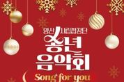 정안뉴스 김재홍 기자 | 양산시는 12월 4일 저녁 7시 30분부터 90분간 양산문화예술회관 대공연장에서 양산시립합창단 송년음악회 ‘Song for you’를 개최한다. 이번 음악회는 ‘당신을 위한 노래’라는 테마로, 따뜻한 위로와 사랑을 전달하는 ‘바람이 머무는 날’, ‘꽃길이 따로 있나, 내 삶이 꽃인 것을’ 등 아름다운 합창을 시작으로 연말 감성의 풍요로움을 더하는 크리스마스 캐럴 공연이 이어진다. 또 ‘불후의 명곡’을 비롯한 각종 공중파 방송에서 그 실력을 인정받은 보컬그룹 ‘헤리티지’의 진한 감성과 하모니를 느낄 수 있는 특별무대가 준비돼 있으며, 마지막으로 합창단 뛰어난 퍼포먼스를 느낄 수 있는 쇼콰이어 공연으로 대미를 장식하게 된다. 다양한 곡과 퍼포먼스가 함께 어우러진 이번 송년음악회는 노래로 마음을 잇는 시간을 제공하여 지친 일상에 휴식과 기쁨을 선사하는 동시에 새해를 향한 희망의 메시지를 나누는 화합의 무대가 될 것으로 기대한다. 나동연 양산시장은 “양산시립합창단의 송년음악회는 매년 시민 여러분께 사랑받고 있는 특별한 행사인 만큼 이번 음악회를 통해 한 해를 잘 마무리하고 새로운