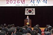정안뉴스 김재홍 기자 | 진주시는 2일 시청 시민홀에서 ‘2026년 시무식’을 갖고, 2026년에는 더 높이 도약할 것을 다짐하면서 새해 업무를 본격적으로 시작했다. 이날 시무식에는 조규일 진주시장을 비롯해 공직자 200여 명이 참석한 가운데 ‘공무원 헌장낭독’과 ‘공직자 청렴서약’으로 책임행정의 실천과 공직사회의 청렴문화 정착을 위한 각오를 다졌다. 조규일 진주시장은 새해 인사말을 통해 “지난해 어려운 여건 속에서도 모든 공직자가 현장에서 최선을 다한 덕분에 시민의 안전을 지키고 의미 있는 성과를 이뤄낼 수 있었다”며, “교통 인프라 확충과 대중교통 혁신, 전국·국제단위 행사와 축제 성공적 개최, 우주항공·그린바이오 등 미래 전략산업 기반 구축을 통해 진주의 도시 경쟁력을 한층 높였다”고 평가했다. 이어 “2026년은 그동안 준비해 온 정책과 사업들이 시민의 삶 속에서 체감되는 변화로 이어져야 하는 중요한 해”라면서 “원도심 활성화와 미래 산업 육성, 청년과 미래세대를 위한 정책을 중장기적 관점에서 책임 있게 추진해 지속 가능한 도시로 도약해 나가겠다”고 밝혔다. 아울러 “청렴과 공정은 공직자의