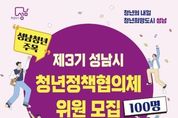 정안뉴스 안정주 기자 | 성남시는 오는 2월 18일까지 ‘제3기 청년정책협의체’ 위원 100명을 공개 모집한다. 청년정책협의체는 지역 청년을 대표해 성남시에 청년정책을 제안하고 소통하는 청년 참여기구다. 제3기 협의체는 일자리·창업, 교육, 주거, 복지·문화 등 4개 분과로 구성된다. 선발되면 분과별로 △청년정책 의견 수렴과 정책 제안 △청년정책 모니터링 △청년정책 홍보 △ 청년의 날 기념 문화 행사 기획 등의 활동을 하게 된다. 제3기 협의체 활동 기간은 오는 3월부터 내년 말까지다. 시는 청년정책협의체 위원들이 정부의 제2차 청년정책 기본계획(2026~2030년)과 연계해 체계적인 정책 제안할 수 있도록 관련 정책 안내와 교육, 워크숍 등 활동의 장을 마련할 계획이다. 대면 회의에 참석한 위원에게는 참여 활동비 2만원을 지급하고, 우수 활동 위원에게는 연말 표창을 수여한다. 협의체 위원 참여 자격은 성남시에 거주하거나 지역 내 직장 또는 학교에 다니는 19~39세 청년이다. 시는 지원동기, 청년정책 관심도, 활동 경험 등을 서면으로 심사해 위원을