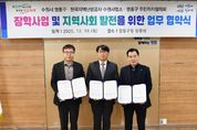 정안뉴스 안정주 기자 | 수원특례시 영통구는 지난 18일, 한국지역난방공사 수원지사, 구 주민자치협의회와 상호 협력을 바탕으로 지역 미래인재 육성을 위한 장학사업 협약을 체결했다. 이번 협약은 지역 내 학업 의지가 높으며 경제적 지원이 필요한 학생들을 지원하고, 주민과 기관이 함께 성장하는 지역 공동체의 기반을 마련하기 위해 추진됐다. 한편 한국지역난방공사는 내년도 장학사업이 보다 내실 있게 추진될 수 있도록 협약 체결과 함께 장학금 500만 원을 기탁했다. 해당 장학금은 사회복지공동모금회를 통해 관내 학생 가운데 도움이 필요한 대상자를 절차에 따라 선정한 뒤 전달될 예정이다. 한국지역난방공사 김진만 수원지사장은 “지역과 상생하는 공기업으로서 사회적 책임을 꾸준히 실천하고자 한다”며 “이번 장학금이 학생들의 학업과 미래 설계에 작은 힘이 되기를 바란다”고 말했다. 또한 장대현 구 주민자치협의회 회장은 “주민이 중심이 되어 지역 인재를 응원하고 지역 빌전에 기여할 수 있어 뜻깊다”며 “앞으로도 책임감을 가지고 장학사업 및 다양한 협력 사업을 성실히 수행하겠다”고 전했다. 장수석 영통구청장