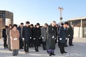 정안뉴스 안정주 기자 | 경상남도의회는 2026년 1월 2일, 병오년 새해를 맞아 국립 3·15 민주묘지와 창원 충혼탑을 참배하고, 도민공연장에서 시무식을 개최하며 새해 의정활동의 공식 출발을 알렸다. 이날 행사에는 최학범 의장을 비롯한 확대의장단과 사무처장 등 공무원들이 참석했으며, 신년 첫 일정으로 역사적 희생과 헌신의 의미를 되새기며 도민을 위한 책임 있는 의정활동을 다짐했다. ▣ 역사와 희생 앞에서 도민의 삶을 지키는 의정 의지 다져 첫 번째 일정으로, 국립 3·15민주묘지를 찾아 헌화와 분향을 통해 지역의 역사 속에서 자유와 정의를 위해 희생한 영령들의 뜻을 기렸다. 이어 창원 충혼탑을 참배하며 국가와 공동체를 위해 헌신한 호국영령들의 숭고한 정신을 되새겼다. 또한 도민의 안전과 삶의 안정을 최우선 가치로 삼고 현장 중심의 민생의정을 흔들림 없이 추진해 나가겠다는 의지를 공유했다. 특히 지역사회가 직면한 다양한 도전 속에서 도의회 본연의 역할을 충실히 수행하며, 도민의 신뢰에 부응하는 의회 운영을 이어가겠다는 각오를 다졌다. ▣ 시무식 통해 새해 각오