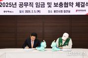 정안뉴스 안정주 기자 | 용인특례시는 5일 시청 접견실에서 시 소속 공무직 근로자를 대표하는 전국민주연합노동조합 용인지부와 ‘2025년 공무직 임금·보충 협약’을 체결했다고 밝혔다. 이날 체결식에는 이상일 시장과 최승덕 전국민주연합노동조합 용인지부장을 비롯한 노사 교섭위원 10여 명이 참석했다. 이번 협약에는 ▲직종별 기본급 3.2~3.7% 차등 인상 ▲국내 문화체험 제도 신설 ▲질병·육아휴직 복직자의 휴가권 확대 ▲생일 휴가 신설 등 근로 여건과 복지 수준을 개선하는 사항이 포함됐다. 노사 양측은 지난해 4월 24일 제1차 본교섭을 시작으로 본교섭 13회, 실무교섭 7회 등 총 20차례에 걸친 협의를 통해 올해 1월 잠정 합의안을 도출했다. 노조는 지난달 28일 조합원 찬반투표를 거쳐 협약을 최종 확정했다. 이번 협약에 따른 임금 인상분은 2025년 근무분에 대해 소급 적용된다. 이상일 시장은 “시의 어려운 사정을 헤아려 주고 협상을 잘 마무리해 주신 데 대해 감사드린다”며 “앞으로 시의 재정 여건이 점차 나아지게 될텐데, 여러분이 하고 있는 일들을 더 적극적으로 응원하고 지원하겠다”