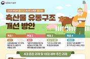 정안뉴스 안정주 기자 | ■ 소비자 부담은 줄이고 생산자 소득은 올리는 '축산물 유통 구조 개선 방안' (목표 1) 한우 - 사료 유통비용 각각 10% 절감 및 도소매 가격 연동성 강화 (목표 2) 돼지 - 거래가격 투명성 제고 및 삼겹살 규격 강화, 기후 변화 대응 생산성 향상 지원 (목표 3) 닭고기·계란 - 가격 조사 체계 개편 및 등급제 활성화 (목표 4) 온라인 - 온라인 거래 활성화 및 가격 비교 서비스 확대 ■ 4대 중점 과제 및 10대 세부 추진 과제 01. 한우 유통 효율화 및 사육 방식 개선 - 한우 유통 효율화(농협) 및 직거래 확산 - 한우고기 판매장 유형별 소·도매가격 연동성 강화 - 한우 사육 방식 개선 및 단기 비육 한우고기 유통 02. 돼지 거래가격 투명성 강화 및 삼겹살 규격 강화 - 경매 물량 확대 및 거래가격 수집·제공 - 삼겹살 규격 강화 및 부위 세분화 - 돼지 생산 관리 인증제 도입 및 기후변화 대응 생산성 향상 지원 03. 닭고기·계란 가격 조사 개선 및 계란 등급제 활성화 - 닭고기·계란 가격 조사 체계 개