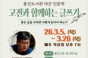 정안뉴스 안정주 기자 | 김포시 통진도서관은 고전 중심의 독서법과 글쓰기를 알려주는 야간 인문학 프로그램 ‘고전과 함께하는 글쓰기’를 오는 3월 5일부터 3월 26일까지 매주 목요일 오후 7시에 통진도서관 세미나실에서 운영한다고 밝혔다. '고전 한 책 깊이 읽기'의 저자 이권우는 ‘고전과 함께하는 글쓰기’를 통해 맹자의 철학과 중용을 깊이 있게 다루며, 책을 읽으면서 생각을 확장하는 독서법과 단락 중심의 글을 쓰는 방법을 총 4회차에 걸쳐 진행한다. 회차별 주제는 ▲고전 속 맹자의 철학 ▲맹자가 알려주는 우리 시대의 관계성 ▲글쓰기가 쉬워지는 독서법 ▲글쓰기의 첫걸음이다. 참여를 원하는 경우 오는 2월 10일 오전 10시부터 통진도서관 누리집 또는 전화로 신청할 수 있으며, 고전과 글쓰기에 관심있는 성인 20명을 선착순으로 모집한다.