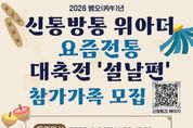 정안뉴스 안정주 기자 | 권선청소년청년센터(수원시청소년청년재단)은 오는 2월 7일 오후 2시부터 5시까지『2026. 신통방통 위아더 요즘전통(通) ‘설날편’』프로그램을 운영한다. 이번 프로그램은 초등학교 3학년부터 6학년 자녀를 포함한 청소년 가족 20명을 대상으로 하며, 설날을 주제로 한 전통놀이 체험을 통해 우리나라 고유의 전통문화를 이해하고 가족 간 유대감을 강화하고자 기획됐다. 참가자들은 설날의 의미와 전통문화에 대한 교육을 받은 뒤 가족 대항 전통놀이대회에 참여하게 된다. 특히 놀이 활동을 통해 가족 간 협동과 소통의 가치를 자연스럽게 경험할 수 있도록 구성됐으며, 활동 우수 가족에게는 소정의 상품을 수여하는 시상 시간도 마련되어 있다 참가 신청은 2026년 1월 13일부터 선착순으로 진행되며, 수원시청소년청년재단 홈페이지를 통해 신청할 수 있다. 본 프로그램은 체험비는 무료로 운영된다.