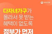 정안뉴스 안정주 기자 | ■ 다자녀가구가 몰라서 못 받는 혜택이 없도록 정부가 먼저 챙겨드립니다! ▷ 혜택알리미 - 내가 몰라도 찾아서 알려주는 개인 맞춤형 알림 서비스 · 다자녀 국가장학금 · 사회적 배려대상자 도시가스요금 경감 · 전기 요금 복지할인 · 에너지복지요금 지원 · 다자녀가구 자동차취득세 감면 ※ 소득, 거주지 등 개인별 상황에 따라 받을 수 있는 혜택은 달라질 수 있어요. ■ 청년이 몰라서 못 받는 혜택이 없도록 정부가 먼저 챙겨드립니다! ▷ 혜택알리미 - 내가 몰라도 찾아서 알려주는 개인 맞춤형 알림 서비스 · 청년 일경험 지원 · 청년농 창업투자 심층 컨설팅 · 청년주택드림 청약통장 · 청년 월세 한시 특별 지원 · 청년 문화예술패스 지원 ※ 소득, 거주지 등 개인별 상황에 따라 받을 수 있는 혜택은 달라질 수 있어요. ■ 어르신이 몰라서 못 받는 혜택이 없도록 정부가 먼저 챙겨드립니다! ▷ 혜택알리미 - 내가 몰라도 찾아서 알려주는 개인 맞춤형 알림 서비스 · 65세 이상 폐렴구균 국가예방접종사업 · 노인 무릎인공관절 수술 지원 · 노인 일자리 및 사회활동 지원 ·