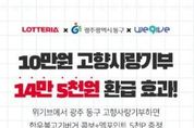정안뉴스 안정주 기자 | 광주 동구는 고향사랑기부제 활성화를 위해 민간 플랫폼 위기브·롯데멤버스·롯데리아와 협력해 특별 기부 이벤트를 진행한다고 밝혔다. 이번 이벤트는 기부자가 보다 쉽고 매력적인 혜택 속에서 고향사랑기부에 참여할 수 있도록 마련된 것으로, 특히 롯데멤버스(엘포인트)·롯데리아와 제휴를 통해 실질적인 혜택을 제공함으로써 지역경제와 기부 문화 확산에 기여하고자 마련됐다. 이번 행사는 이달 27일부터 오는 12월 31일까지 진행된다. 엘포인트 앱을 통해 ‘광주동구&위기브 이벤트’ 누리집에 접속해 광주 동구에 10만 원 이상 기부하면 자동 참여된다. 광주 동구에 10만 원을 기부한 참여자는 ▲10만 원 연말정산 100% 세액공제 ▲광주 동구 답례품(기부액의 30% 한도) 제공 외에도, 롯데리아 ‘한우 불고기 버거 콤보’ 쿠폰 1매와 엘포인트 5천 포인트를 추가로 받을 수 있다. 기부자가 실제로 받을 수 있는 전체 혜택 규모는 14만 5천 원 상당으로, 쿠폰과 엘포인트는 매주 목요일 순차적으로 발송될 예정이다. 임택 동구청장은 “광주 동구 고향사랑기부제에 꾸준히 관심을 가져주시는 분들께 감사