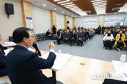 정안뉴스 안정주 기자 | 전북특별자치도가 김제시와 손잡고 지역의 미래 성장판을 키운다. 도는 9일 김제시청 대강당에서 ‘도민과 함께하는 2026년 시군 방문’행사를 열고 김제시 발전을 위한 협력 방안에 대해 설명했다. 이날 자리에서는 환경 개선부터 첨단산업 육성, 교통 인프라 확충, 청년 일자리 창출까지 김제시의 체질을 바꿀 굵직한 사업들이 총망라됐다. 도와 김제시가 힘을 모으는 분야는 환경이다. 새만금 유역 수질과 전북혁신도시 악취 문제의 원인으로 지목돼 온 용지 정착농원 축사 정리가 마무리 국면에 접어든다. 1차 사업으로 26개 축사를 매입한 데 이어, 2029년까지 340억 원을 들여 잔여 27개 축사를 모두 사들이고 철거해 환경오염원을 완전히 걷어낸다는 구상이다. 김제를 미래산업의 거점으로 키우려는 청사진도 구체화되고 있다. 옛 김제공항 부지와 새만금 일원 273ha에는 종자산업 혁신클러스터 조성을 구상 중이다. 1,738억 원 규모의 이 사업은 지난해 10월 예비타당성조사 대상으로 선정되며 본궤도에 올랐다. 첨단정밀육종연구센터와 K종자비즈니스센터, 스마트 온실 등이 들어서면 김제는 국내 종자산업의 심장