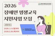 정안뉴스 황은경 기자 | 충북인재평생교육진흥원(원장 유태종)은 2026년 장애인 평생교육 지원사업에 참여할 도내 기관·단체를 공개 모집한다. 이번 사업은 장애인 평생교육의 영역을 넓히고, 장애인 학습자의 실질적인 학습권 보장을 강화하기 위해 마련됐다. 공모 분야는 △(1유형) 장애인 평생교육 프로그램 운영 △(2유형) 장애인 평생교육 참여 지원 및 학습 접근성 강화 △(3유형) 장애인 평생교육 실무자 네트워크 운영 지원 등 총 3개 유형이다. 지원 대상은 도내 장애인 평생교육 관련 기관 및 단체다. 유형별 주요 내용은 △(1유형) 장애 유형·연령·학습 수준 등을 반영한 맞춤형 평생교육 프로그램 운영 △(2유형) 이동과 의사소통, 학습 이해를 돕기 위한 보조 인력 및 환경적 지원 제공 △(3유형) 장애인 평생교육 유관기관 실무자를 중심으로 한 협력 네트워크 구축 및 운영 등이다. 보다 자세한 사항은 공고문을 통해 확인할 수 있다. 접수는 2월 26일까지이며 세부 공고 내용과 신청 서식은 충북인평원 홈페이지 공지사항에서 확인할 수 있다. 충북인평원은 이번 공모를 통해 총 10개 기관을 선정