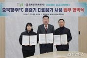 정안뉴스 황은경 기자 | 청주시는 13일 충북청주 프로축구단(충북청주FC), 다회용기 공공세척센터와 함께 충북FC 홈경기 다회용기 사용 확대를 위한 업무협약을 체결했다. 임시청사 직지실에서 진행된 협약식에는 이범석 청주시장, 김현주 충북청주FC 대표, 김은숙 청주시 다회용기 공공세척센터 대표가 참석했다. 이번 협약은 축구 경기 관람 과정에서 대량으로 발생하는 일회용기 문제를 구조적으로 개선하고, 시민이 일상에서 자연스럽게 자원순환을 실천할 수 있는 친환경 스포츠 문화를 확산하기 위해 마련됐다. 협약에 따라 청주시와 충북청주 프로축구단, 다회용기 공공세척센터는 2026년 시즌 예정된 충북청주 프로축구단 홈경기 16경기에서 다회용기 사용한다. 경기장 내 다회용기 사용과 반납 체계를 구축하고, 회수·세척·재공급 전 과정을 안정적으로 운영해 ‘쓰레기 없는 경기장’ 조성을 공동으로 추진할 계획이다. 각 기관은 역할 분담을 통해 협력을 강화한다. 충북청주 프로축구단은 경기장 현장 운영과 관람객 및 푸드트럭 사업자 대상 안내 및 캠페인을 맡고, 청주시는 행정 지원과 정책 연계를 담당한다. &nbs