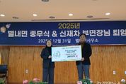 정안뉴스 안정주 기자 | 남양주시는 지난달 31일 열린 ‘2025년 별내면 종무식’에서 별내면 기관단체장협의회가 지역 내 취약가구 지원을 위해 후원금 200만 원을 별내면 지역사회보장협의체에 기탁했다고 2일 밝혔다. 이번 후원은 한 해의 마지막을 뜻깊게 마무리하고, 지역사회 구성원 간 연대와 나눔을 실천하고자 마련된 자리에서 이뤄졌다. 기탁된 후원금은 향후 별내면 취약가구의 안정적인 생활 지원과 맞춤형 복지사업 추진에 활용될 예정이다. 장태식 별내면 기관단체장협의회 부회장은 “지역과 함께 나눔을 실천할 수 있어 뜻깊게 생각한다”며 “앞으로도 지역과 함께하는 상생하는 지역 공동체를 만들기 위해 최선을 다하겠다”고 말했다. 김혜연 별내면장은 “이번 종무식은 지역 기관과 단체가 한자리에 모여 올 한 해를 되돌아보고 새로운 출발을 다짐하는 의미 있는 자리였다”며 “앞으로도 일상 속 나눔이 자연스럽게 이어지는 별내면을 만들기 위해 함께 노력하겠다”고 밝혔다.