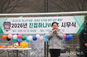정안뉴스 안정주 기자 | 남양주시는 22일 진접읍 부평리 인조잔디구장에서 진접읍 3개 축구회와 함께 ‘2026년 시무식 및 안전기원제’를 개최했다고 밝혔다. 이번 행사는 △진접FC(회장 이부영) △광릉크낙새FC(회장 신홍근) △하나여성FC(회장 정경화) 등 3개 지역 축구회가 한자리에 모여 새해를 맞아 안전하고 활기찬 축구 활동을 다짐하기 위해 마련됐다. 이날 행사에는 주광덕 남양주시장을 비롯해 지역구 시의원, 진접읍축구협회 회원 등 100여 명이 참석했다. 시무식은 △신년사 △내빈 축사 △안전 기원제 △기념 촬영 순으로 진행됐다. 참석자들은 올 한 해 회원 간의 화합과 부상 없는 경기를 다짐했다. 주광덕 시장은 축사를 통해 “지역의 생활체육 활성화와 건강한 여가문화 조성에 기여해 주신 회원들께 깊이 감사드린다”며 “진접읍 축구가 한 단계 더 도약하는 한 해가 되길 바란다”고 말했다. 이광우 진접읍축구협회장은 “추운 날씨에도 불구하고 참석해 준 분들께 감사드린다”며 “지역 사회의 화합을 도모하고 건강한 에너지를 전파하는 축구협회가 되도록 노력하겠다”고 전했다. 한편, 시는 지난 9일 진