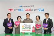 정안뉴스 황정혜 기자 | (사)무궁화복지월드 대연권 자원봉사단(단장 장창덕)에서 지난 12월 1일 부산 남구(구청장 오은택)에 이웃돕기 성금 300만 원을 전달했다. (사)무궁화복지월드 대연권 자원봉사단은 2022년 기부를 시작으로 4년째 남구의 저소득 이웃을 위한 나눔을 이어오고 있다. 특히 올해는 남구 지역사회보장협의체에서 추진하는 고독사 예방 사업에 성금을 기탁해 지역사회 안전망 강화에 도움이 될 것으로 기대된다. 전달식에 참석한 장창덕 단장은“최근 1인 가구 증가로 고독사 문제가 심각한 문제가 심각해지고 있다는 뉴스를 보고 깊은 책임감을 느꼈다”며“작은 정성이지만 남구의 고독사 예방 사업에 힘을 보태어, 이웃들이 외롭지 않고 건강한 삶을 누리는 데 도움이 되길 바란다”고 말했다. 오은택 남구청장은“매년 연말연시에 어려운 이웃을 위해 나눔을 지속해 주셔서 감사드린다”며 “전달받은 성금은 고독사 위험군에게 실질적인 도움이 될 수 있도록 투명하고 효율적으로 집행하겠다”고 전했다. 이날 기탁한 성금은 사회복지공동모금회를 통해 복지사각지대 고독사 예방 지원사업에 사용될 예정이다.