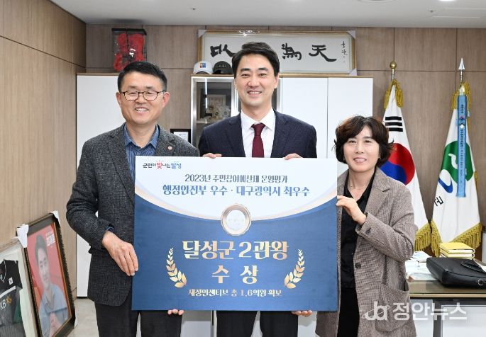 정안뉴스 안정주 기자 | 달성군은 대구광역시가 주관한 2023년 주민참여예산제 평가에서 1위(최우수) 기관으로 선정되어 지난해 12월 행정안전부 평가 2년 연속 우수 기관 선정에 이어 2관왕을 달성했다.