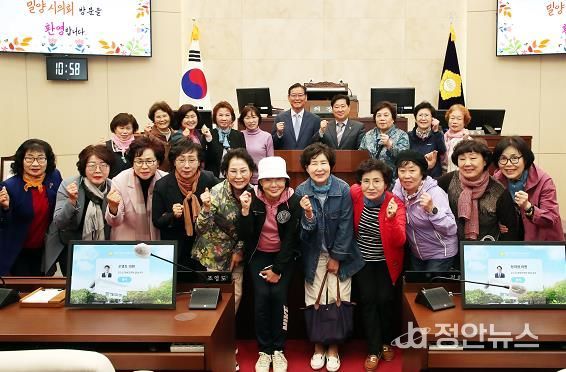 정안뉴스 여지안 기자 | 지난 15일, 밀양여고 제17회 졸업생 20여명이 밀양시의회를 방문하여 견학을 실시했다.
