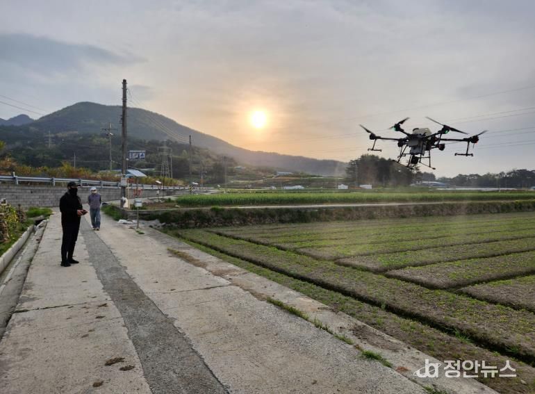 정안뉴스 안정주 기자 | 남해군은 지난 11일과 12일 양일간 친환경 벼 재배단지 약 43ha에 6종의 유용 미생물을 살포했다.