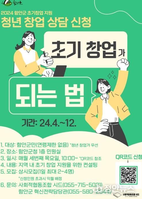 정안뉴스 안정주 기자 | 함안군은 지난해에 이어 올해도 오는 18일부터 초기창업 컨설팅 지원 창업상담을 이어간다.