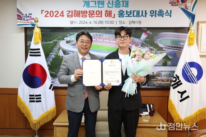 정안뉴스 안정주 기자 | 김해시는 4월 16일‘2024 김해방문의 해’홍보대사로 지역출신 개그맨 신흥재를 홍보대사로 위촉했다고 밝혔다.