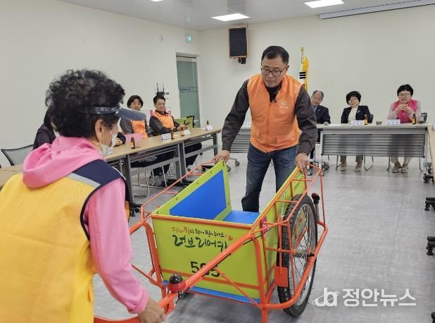 정안뉴스 안정주 기자 | 진주시자원봉사센터는 16일 상봉동행정복지센터에서 폐자원 수집 어르신의 자활을 지원하기 위한 ‘사랑의 리어카’ 전달식을 가졌다.