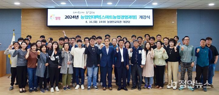 정안뉴스 안정주 기자 | 밀양시는 16일 시 농업기술센터 농업인교육관에서 교육생 50명이 참석한 가운데 2024년 농업인 대학 개강식을 열고 본격적인 교육 일정을 시작했다고 밝혔다.