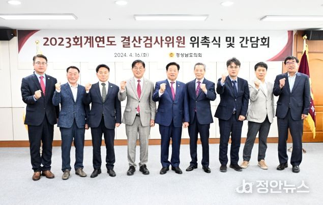 정안뉴스 여지안 기자 | 경상남도의회 김진부 의장은 경상남도의회 의정회의실에서 ‘2023회계연도 결산검사위원’을 대상으로 위촉장을 16일 수여했다.