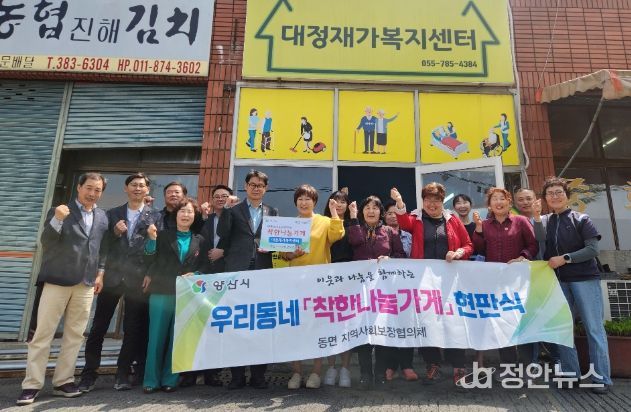 정안뉴스 안정주 기자 | 양산시 동면지역사회보장협의체가 16일 착한나눔가게 53호점에 등록한 대정복지센터를 찾아 감사현판을 전달했다.