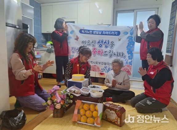 정모(86) 어르신은 “따뜻한 생일상을 차려줘서 매우 감사하고 아름다운 꽃을 보니 기분이 좋다”며 회원들에게 고마운 마음을 전했다.