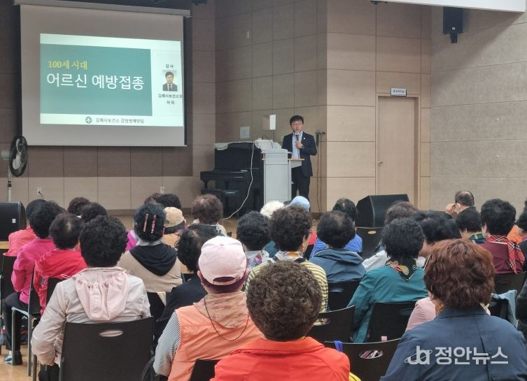 정안뉴스 안정주 기자 | 김해시보건소는 16일 오후 2시 동부노인종합복지관에서 이용 어르신을 대상으로 ‘100세 시대, 어르신에게 필요한 예방접종’ 주제 건강강좌를 개최했다.
