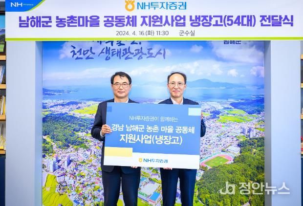 정안뉴스 안정주 기자 | 남해군은 16일 NH투자증권에서 냉장고 54대를 기탁했다고 밝혔다.