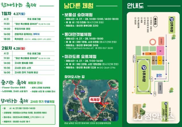 창선면과 창선 고사리의 특징을 알아볼 수 있는 ‘관객과 함께하는 OX퀴즈’를 비롯해 ‘고사리 팔씨름 대회’, ‘MC와 함께하는 장기자랑’ 등이 진행된다.