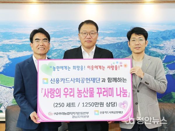 정안뉴스 안정주 기자 | 창원특례시는 17일 (사)우리농업지키기운동본부 경남지역본부에서 사랑의 우리 농산물꾸러미 250박스(1250만원 상당)를 기부했다고 밝혔다.