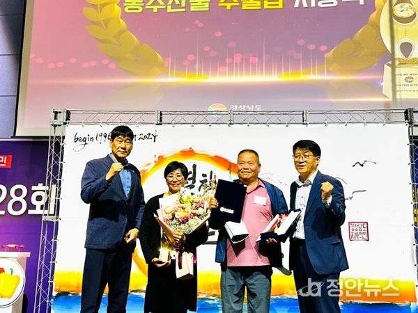 정안뉴스 안정주 기자 | 의령군은 ‘제28회 경상남도 농수산물 수출탑 시상식’에서 지용길, 장성점 농가가 농산물 생산 농가부문에 30만불, 10만불 수출탑 수상의 영광을 안았다고 1일 밝혔다.