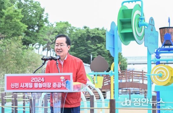 정안뉴스 안정주 기자 | 대구광역시는 7월 1일 오후 3시, 신천 대봉교 좌안 상류 둔치에서 홍준표 대구광역시장, 이만규 시의회의장, 강은희 시교육감, 조재구 남구청장, 관련 유관기관장, 공사관계자, 주민 등이 참석해 ‘신천 사계절 물놀이장 조성공사’의 준공식을 성황리에 개최했다.